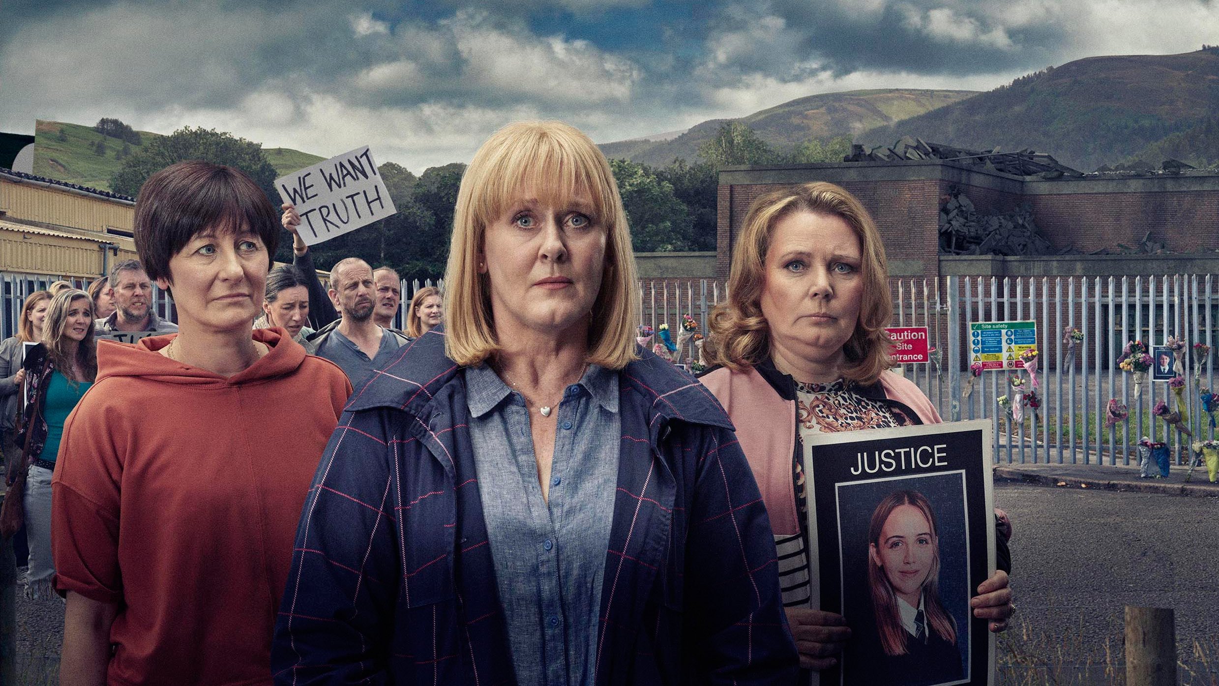 Tragedy strikes the welsh town of Glyngolau when an accident on a construction site kills a group of trespassing children. Grief quickly turns to anger and the families cry for justice. But as the gears of justice slowly turn, challenging truths begin to emerge. It falls to the Council Leader’s wife, Polly, to hold the community together, all the while also caring for a daughter – the only survivor of the collapse. And as those in charge fail to deliver closure for the town, it’s up to her to lead them on the march for justice, no matter what the cost.
